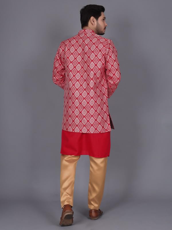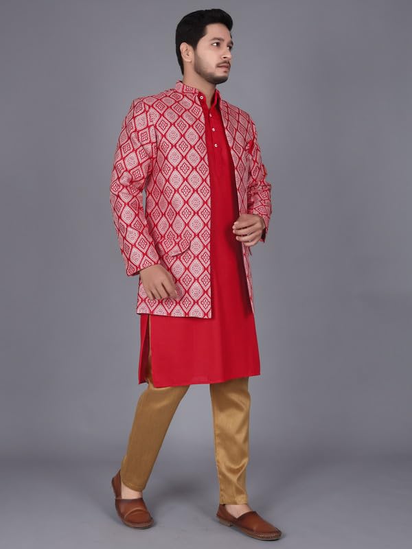 Amzira Men’s Woven Printed Cotton Jacuqard Kurta Pajama Jacket with Long Sleeve Hip Length and Pull On Closure Type Jacket