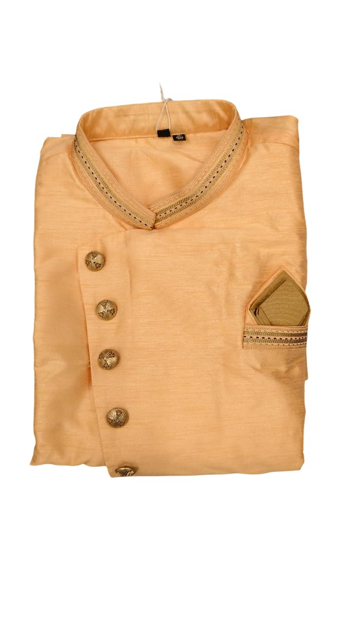 Generic Name : DesiButik Men’s Orange Silk Blend Elegant Sherwani with Pyjama DBOS1081