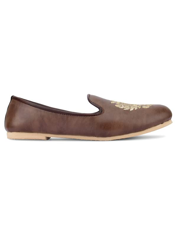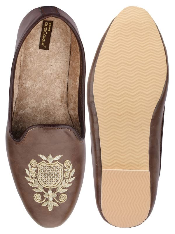 “Desi Colour brings to you this beautiful creation from the newly introduced “Designer Collection”. A pair of Round toe beautiful embroidered elegant mojari. The upper is made in majestic colour patterns to give it a beautiful ethnic look which is suitable for Festive/Party, groom dressing or Special Occasions.
