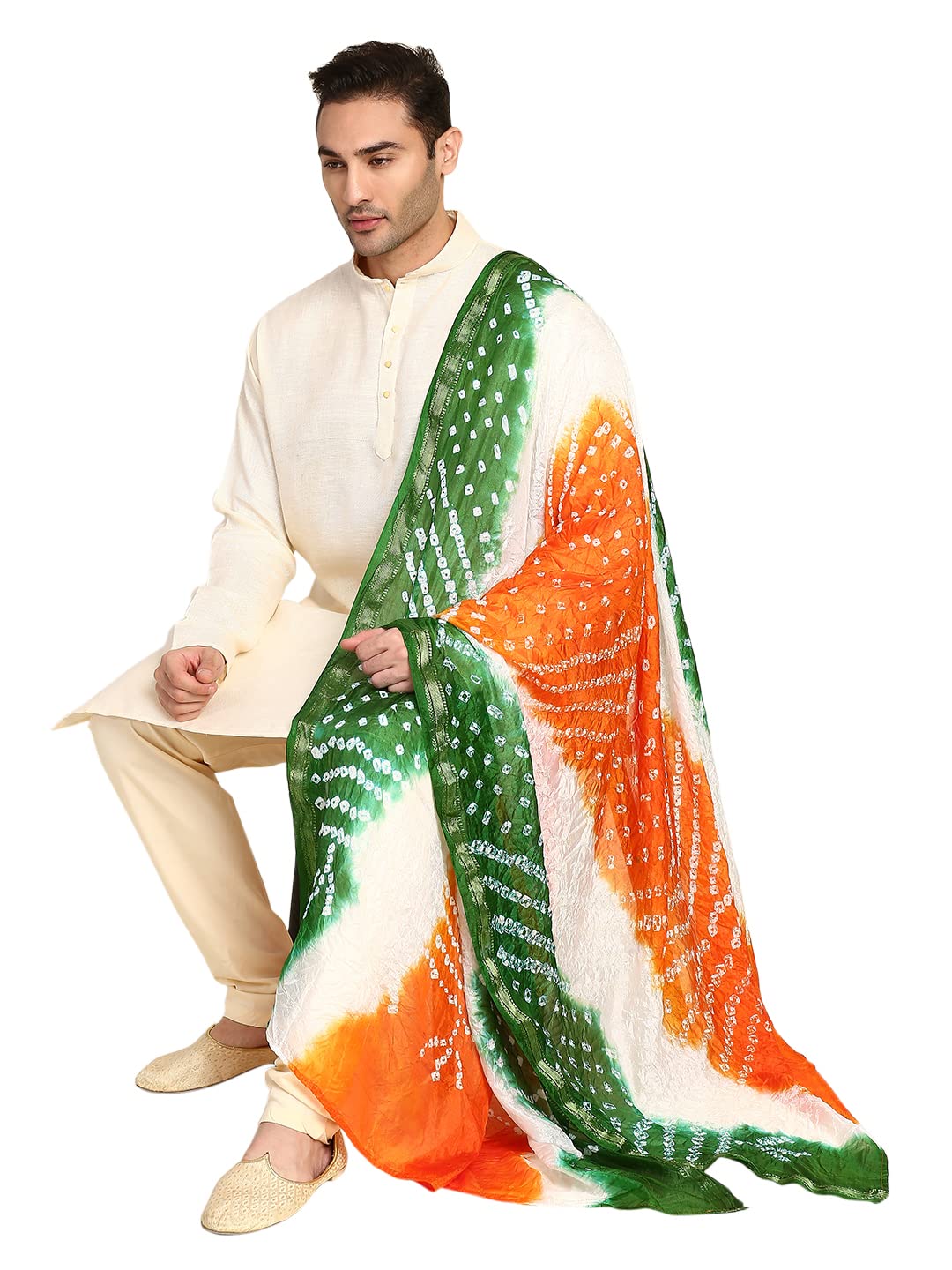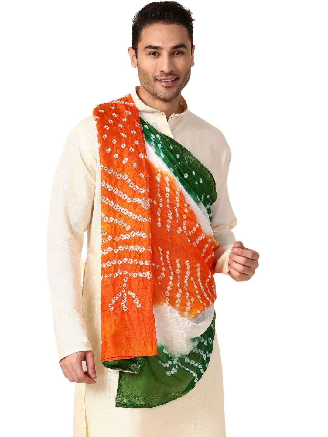 DUPATTA BAZAAR Men’s Bandhini Silk Tri Colour Dupatta for Kurta/Sherwani/Achkan