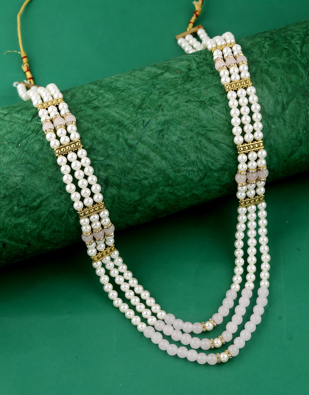 Fancy Baby Pink Colour and White pearl 3 Layer beads Dulha groom sherwani Necklace/Moti Mala for Men for wedding.