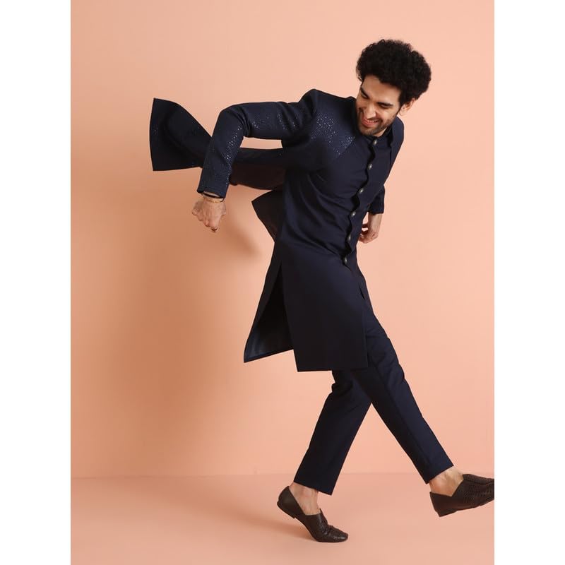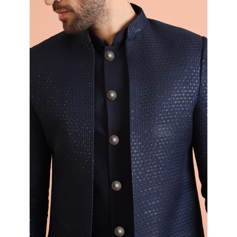 Discover a wide range of elegantly designed Kurta Sherwani Dhoti Set that embody traditional charm and modern style, these sherwani sets are perfect for grooms and groomsmen, featuring exquisite embroidery and opulent designs