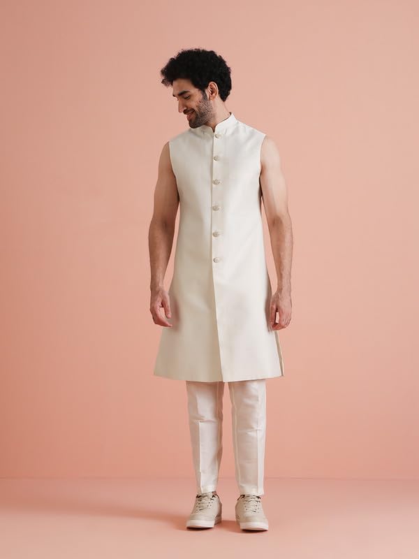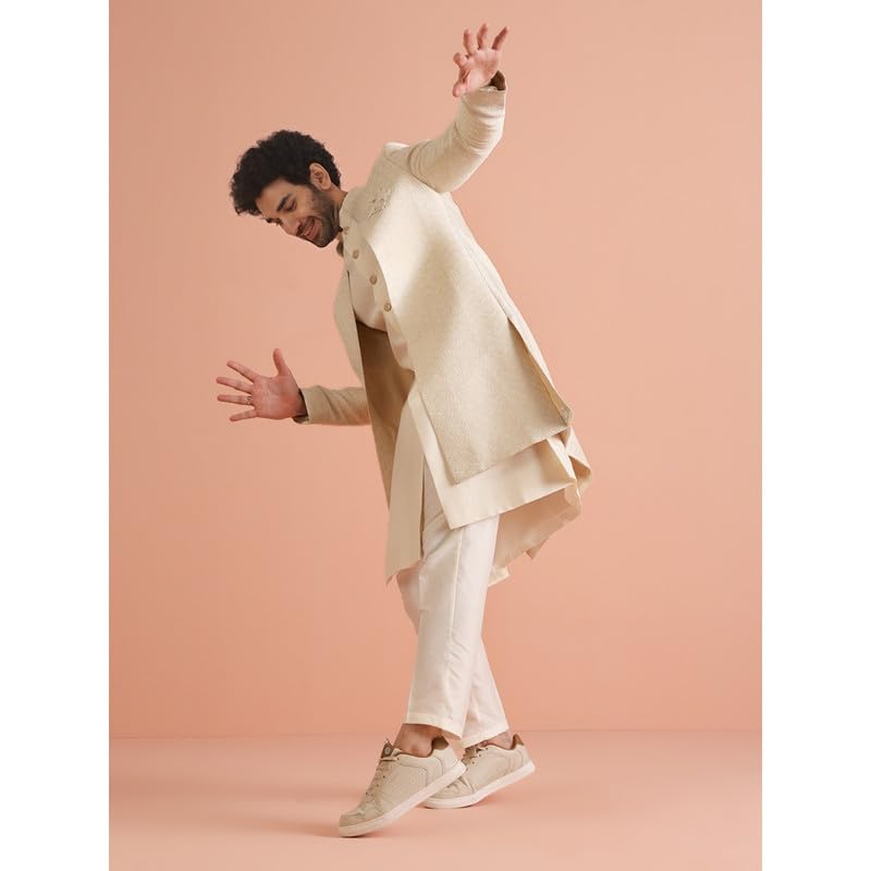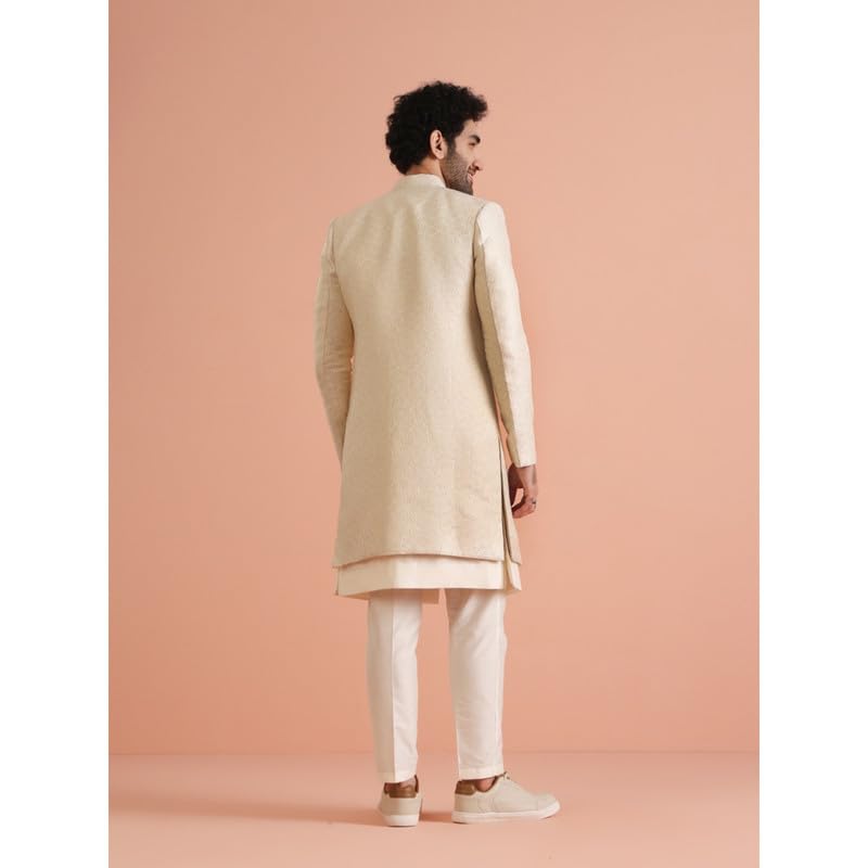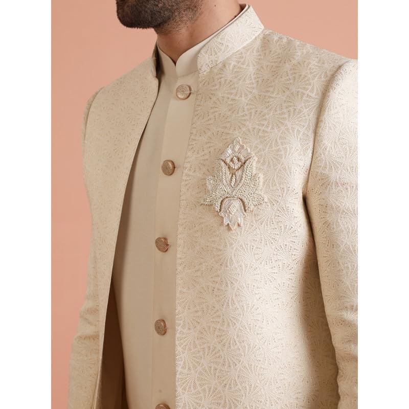 KISAH Mens Jacket Sherwani Trouser Set|Silk Blend Fabric Jacquard Pattern Indo-Western Ethnic Set for Men|Regular Fit Mandarin Collar Long Sleeves