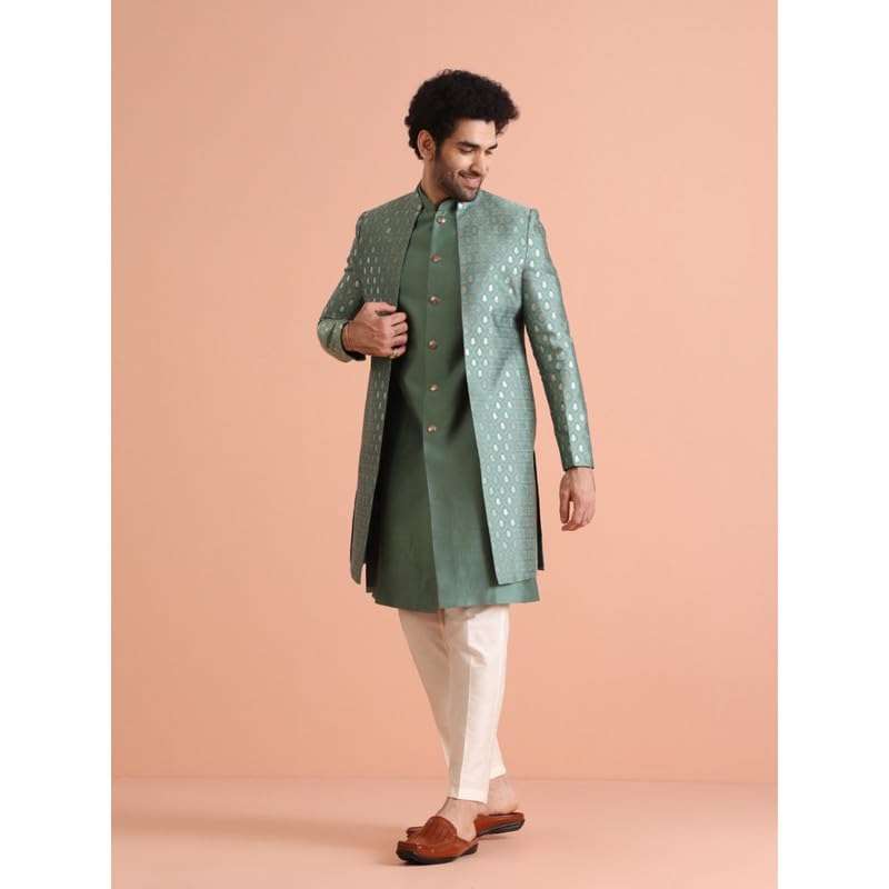 Discover a wide range of elegantly designed Jacket Sherwani Trouser Set that embody traditional charm and modern style, these sherwani sets are perfect for grooms and groomsmen, featuring exquisite embroidery and opulent designs.