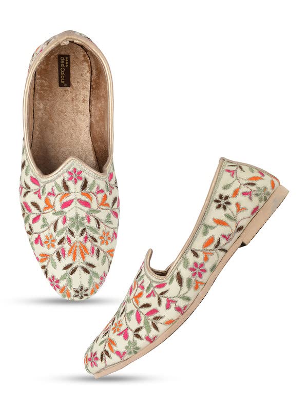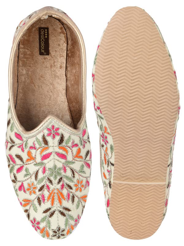 Explore range of mens ethinic footwear available on Amazon. Desi Colour brings to you this beautiful creation from the newly introduced “Designer Wear Collection”. A pair of Embroidered beautiful elegant Ethnic Loafer. The upper is made in majestic colour patterns to give it a beautiful ethnic look which is suitable for Festive/Party, groom dressing or Special Occasions.
