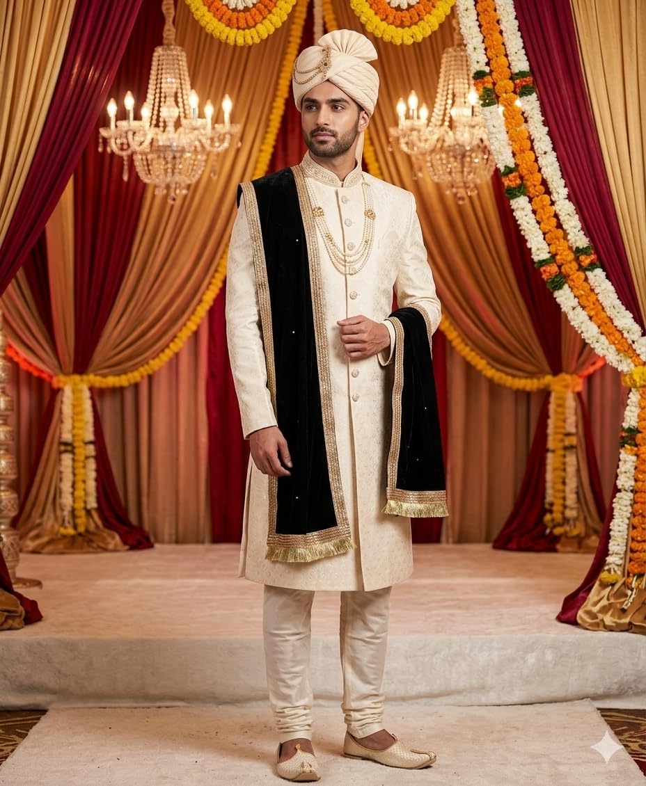 Men’s Narrow Stole Dupatta in Velvet fabric for wearing on kurta, sherwani, achkan etc. Length of this dupatta is 2.25m and width is 37cm.
