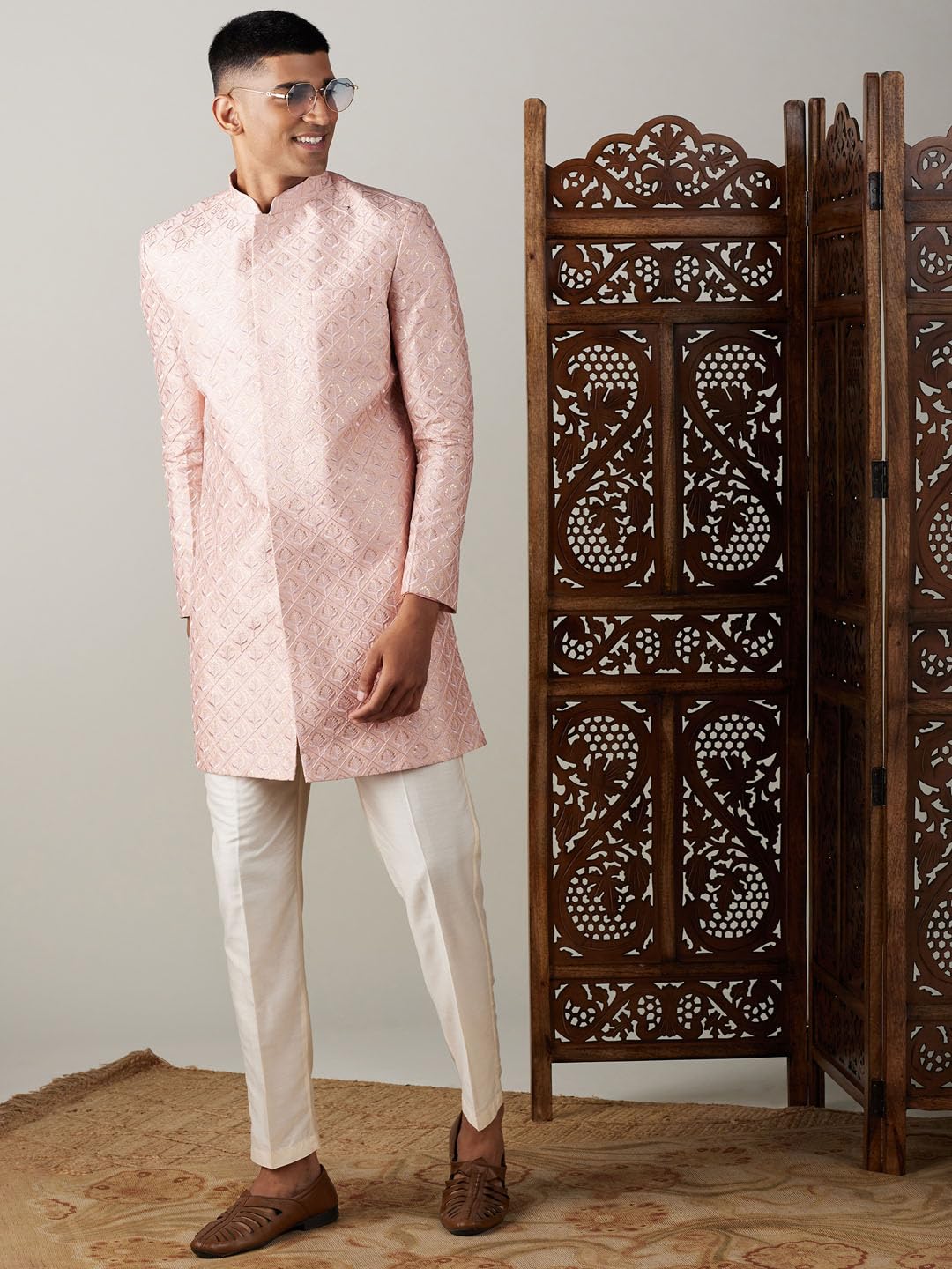 Fabric: Silk Blend | Contents: a Thread Work Silk Blend Sherwani For Men.Thread Work Silk Blend Sherwani For Men.Select your Jacket size based on your chest dimension. Note: if one has a heavier abdomen compared to chest then he should select one size bigger Jacket. Jackets should have fitted look compared to a Kurta,Disclaimer: We have made a consistent effort to make the colors and finishes similar to the image of the products you see on screen. However, the actual product and the images on the website can differ! Customer’s discretion is advised.Suitable for: Party, Weddings, Regular Wear, Celebrations, Occasions, Festivals, Lohri, Pongal, Makar Sakranti, Baisakhi, Holi, Eid, Raksha Bandhan, Dussehra, Diwali, Navratri, Pooja, Christmas, Onam, Ganesh Chaturthi, Janmasthmi and Gifts for Mens.Wash Care Instructions: Dry Clean preferably or cold light wash.