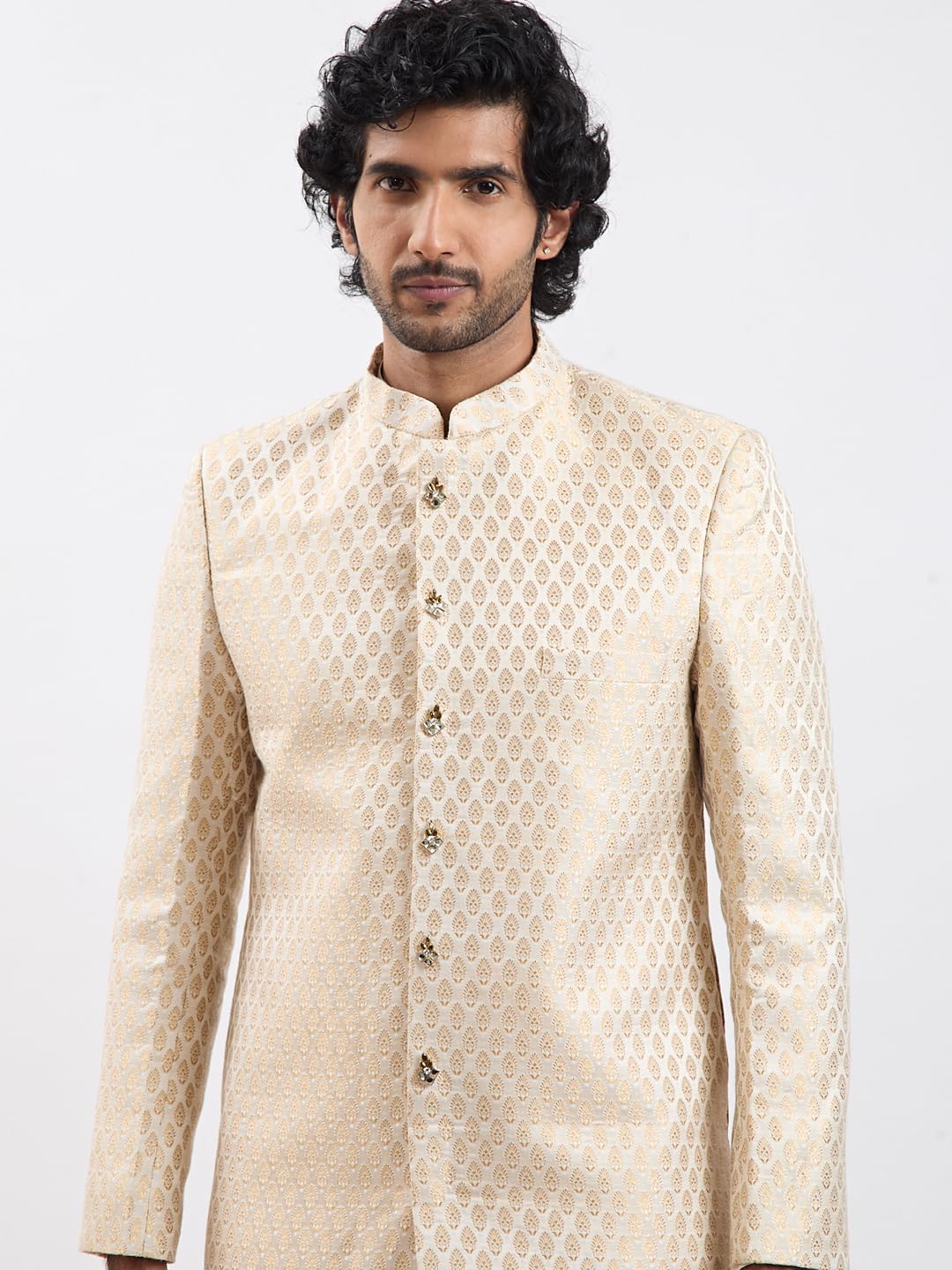 Generic Name : VASTRAMAY Men’s Cream Silk Blend Sherwani Only Top