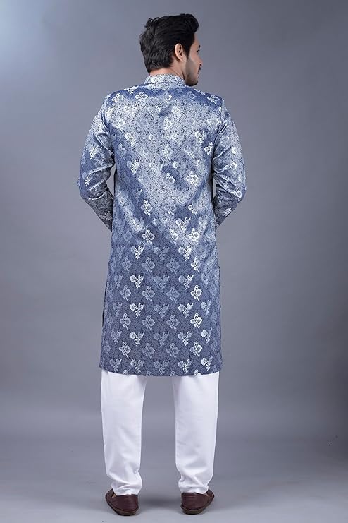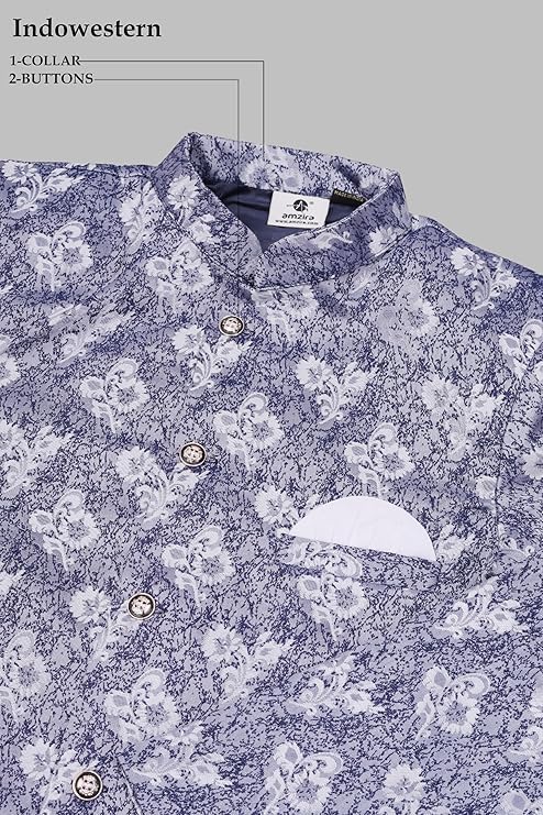 XEPON Mens Ethnic Wear Dark Blue Traditional Indo Western Set