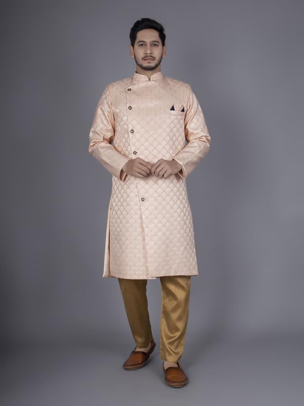 XEPON is a brand brings you quality and affordability. We take pride in our commitment to maintain quality standards in each piece manufactured by us. A true epitome of class, this designer Sherwani Combo will surely reflect your impeccable taste in Fashion. Made from Heavy Jacquard Fabric, this set will surely make you the cynosure of all eyes